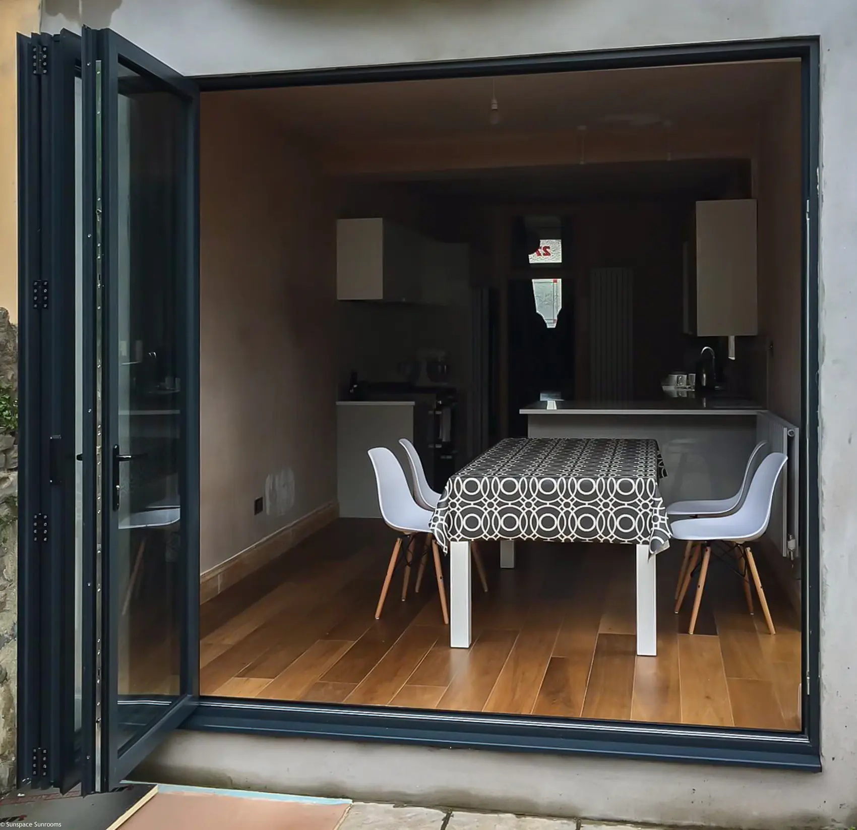 Due to their slim frame profile, the window surface is a lot larger, meaning they allow far more light into the room than any other window or door. Even when closed there’s little in the way of light, so there isn’t really a compromise. And obviously when opened the space is astounding, with nothing obstructing natural daylight. Bi-folding doors can be perfect for rooms that don’t get much light, rooms which you’d like to enjoy more time in.